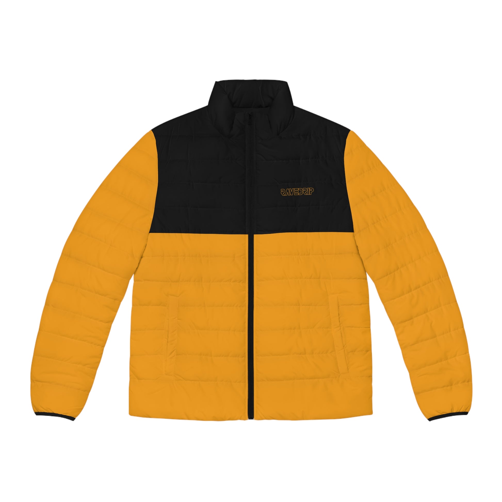 Rave Drip Orange Colorblock Puffer Jacket for Men